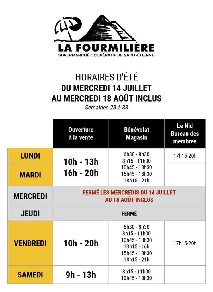 N’hésitez pas à passer en magasin ou nous contacter à contact@coop-lafourmiliere.fr.