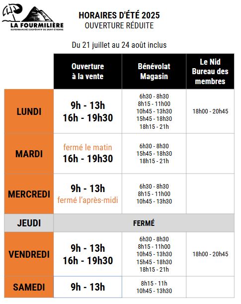 Notre adresse : La Fourmilière Supermarché Coopératif de Saint Etienne, 19 rue Nicolas Chaize, 42100 Saint-Étienne