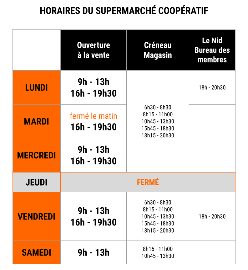 Lundi, Mercredi, Vendredi : 9h-13h / 16h-19h30