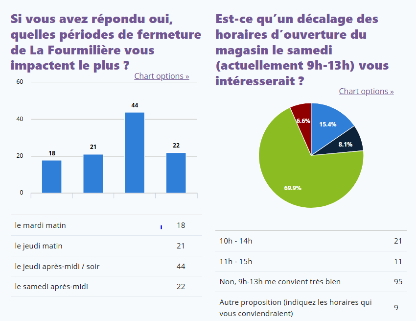 - Mais les horaires actuels du samedi (9h-13h) convient à 70% des Fourmis